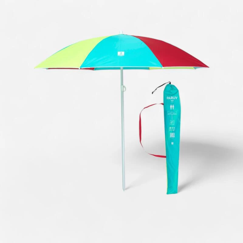 Decathlon PARASOL DE PLAGE PARUV 160 UPF 50+ 2 PLACES – Multi Couleur Rouge Jaune Bleu