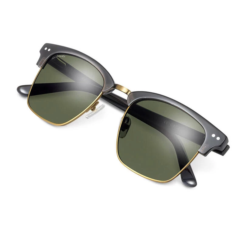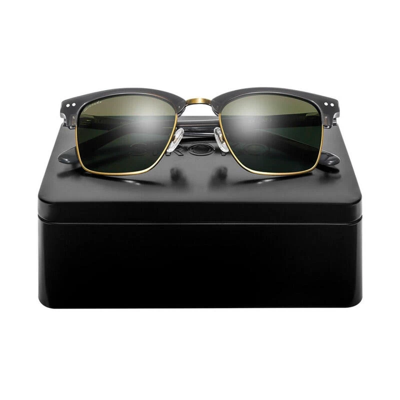 Lunettes de soleil Siroko Hudson avec monture noire en acétate, branches et pont en acier inoxydable, verres verts en nylon catégorie 3 et protection UV400