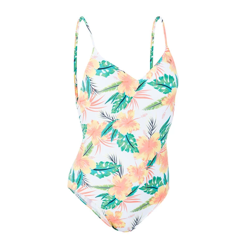 Conçu pour la surfeuse débutante qui surfe dans les mousses.Ce maillot de bain 1 pièce femme a un décolleté V avec coques amovibles et des bretelles fines réglables avec lien de serrage et fermetures avec lien. Dos en U et ouvert.