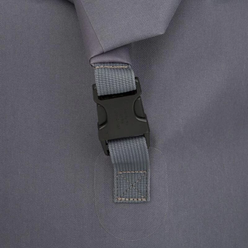 1/ rouler le haut du sac 5 fois avec soin, en serrant les plis sur l’épaisseur de la sangle